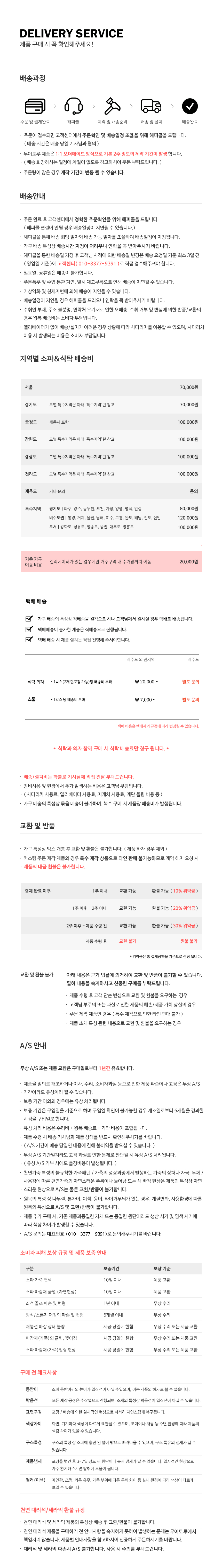 주문 후 배송까지 4 ~8주 소요되며 고객 센터에서 안내 후 배송 진행되며 모든 배송비는 착불입니다